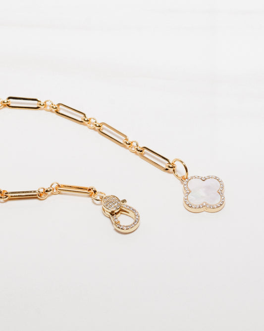 Clover Micro Pave Mother of Pearl Paperclip Bracelet